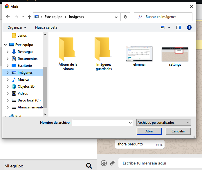 Al realizar click en el mismo se abrirá una ventana de su pc donde podrá buscar el archivo que desea mandar: